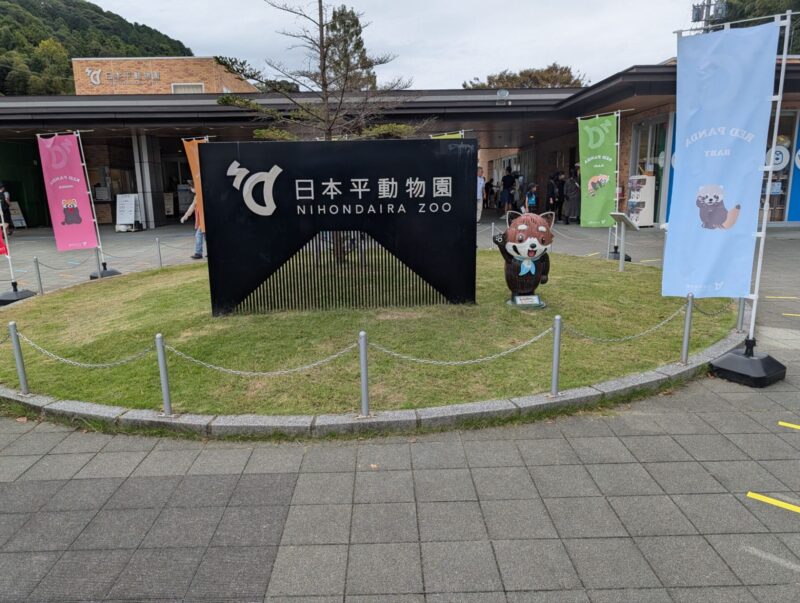 日本平動物園に着きました。レッサーパンダ君が出迎えてくれます。大人は入園料620円を購入。動物園も娘ちゃんは無料でした。