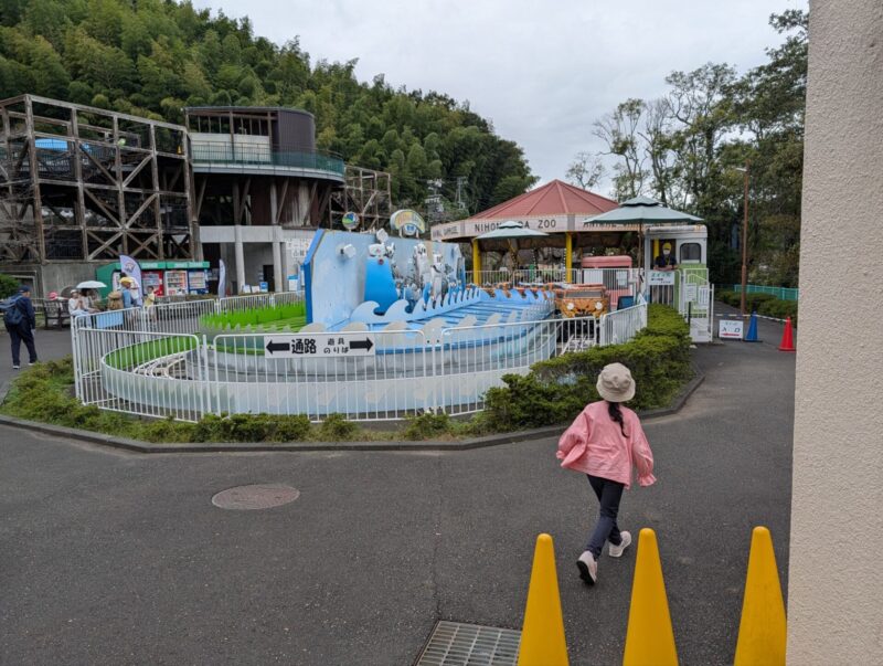 休憩のあとは園内にある遊園地に向かいます。昔ながらの乗り物でしたが、娘ちゃんは楽しんでいました。