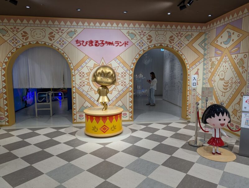 ちびまる子ちゃんランドに到着。入り口には金のまるちゃんがいました。
