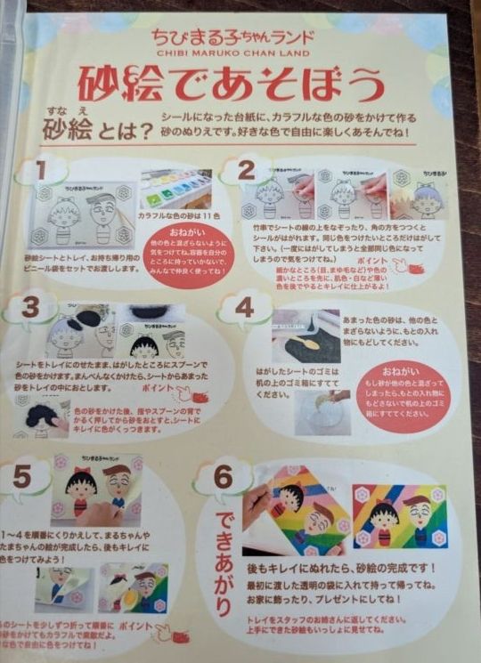 ちびまる子ちゃんランドから出た後、娘ちゃんは遊び足りないので砂絵体験しました。