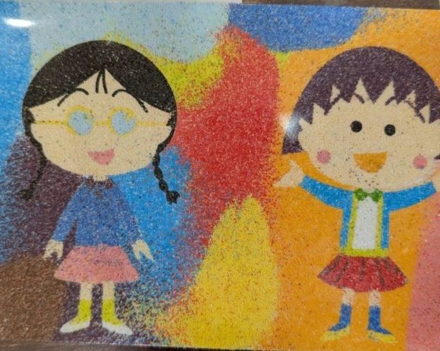 11色のカラフルな砂を自由に選んで砂絵作りを進めます。楽しみながら作品を完成させることができました。とってもかわいい。
