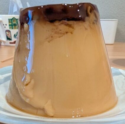 上のソースはあんこ、カスタード部分はしっかりどら焼きの皮の味がする とっても不思議なプリンでした。