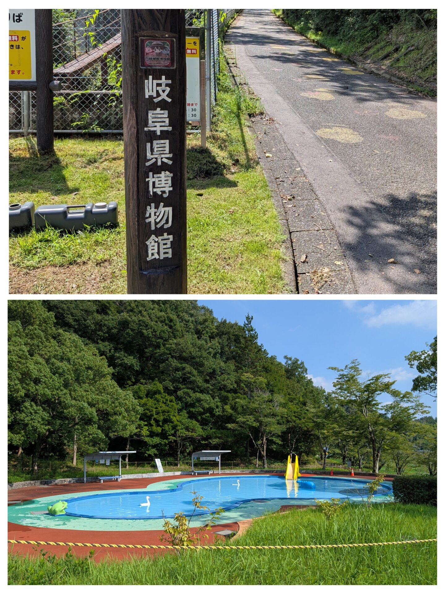 暑い日が続き、なかなかお外で遊べないので岐阜県博物館で屋内施設の見学と徒渉池(としょうち)で水遊びをしに岐阜県百年公園に行くことを決めました。