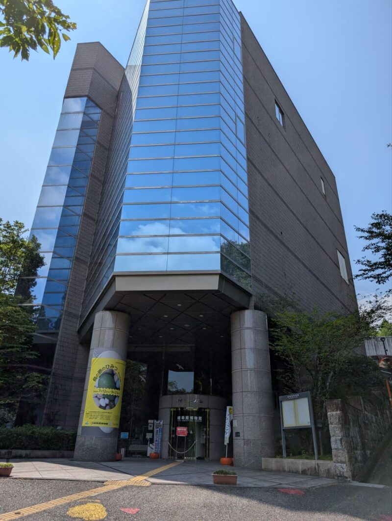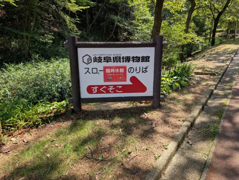 おじいちゃんの送迎で北駐車場に降ろしてもらい、岐阜県博物館へ向かいます。心なしかなんだか人がとても少ない。暑すぎて人が少ないのかと思ったら、臨時休館の掲示が…