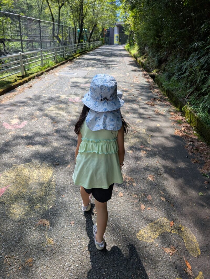 博物館はあきらめて徒渉池へ水遊びに向かいます。あまり調べず行きましたが徒渉池は南エリアにあり、北エリアからは遠いのでめちゃくちゃ歩きました。二人とも汗ダクダクです。